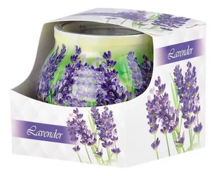 Świeca zapachowa w szkle, dekorowana motywem Lawendy na folii. Zapach lawendowy