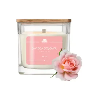 Świeca sojowa o zapachu RÓŻY 205gOdkryj niepowtarzalny urok naszej świecy, gdzie misternie skomponowany zapach róży przeniesie cię w romantyczny świat pełen delikatności i elegancji. Nasza świeca o zapachu róży to kwintesencja piękna, która otula pomieszczenie niewidzialnym welonem świeżości. Czas palenia: ok 40-50 hNATURALNY WOSK SOJOWYW naszych świecach wykorzystujemy naturalny wosk sojowy. Warto podkreślić, że ten wosk jest całkowicie bezpieczny dla ludzi.