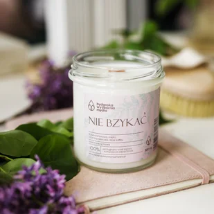 Świeca sojowa Nie Bzykać – Naturalna ochrona przed komarami!Świeca sojowa Nie Bzykać to wyjątkowy produkt stworzony z myślą o wszystkich, którzy pragną cieszyć się relaksem na świeżym powietrzu, bez obawy o nieproszonych gości. Dlaczego warto wybrać świecę Nie Bzykać?Skuteczność: naturalny olejek lemongrasowy, zawarty w świecy, działa odstraszająco na komary, zapewniając Ci spokojne wieczory na tarasie, balkonie czy w ogrodzieEkologiczna: wykonana z certyfikowanego wosku sojowego, świeca jest prz