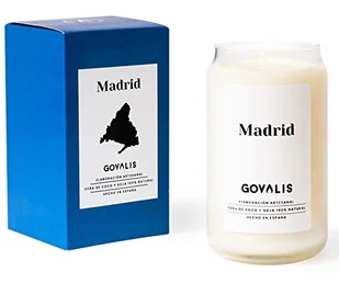 GOVALIS Świeca zapachowa Madryt | 100% naturalny wosk sojowy | 100 godzin, duża świeca zapachowa w szklance, wegańska, zapach drewna, oryginalne prezenty dla kobiet przyjaciół, pamiątki Madryt,