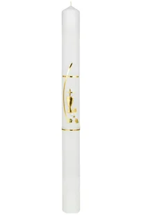 Świeca komunijna ręcznie zdobiona biała ze złotymi zdobieniami. Elementy na świecy wykonane są z wosków, które spalają się równomiernie z całą świecą. Wymiar...