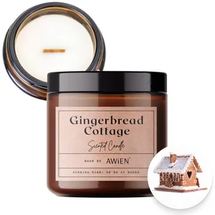 GINGERBREAD COTTAGE ŚWIECA ZAPACHOWA Zapach świątecznego ciepła i aromatu świeżo upieczonych pierniczków, który przeniesie cię w magię świąt. Już na samym po...