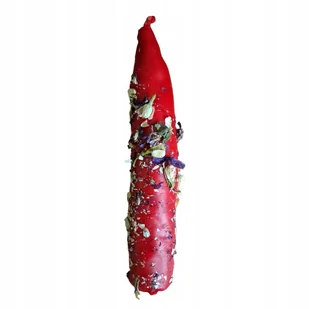 Czerwona świeca rytualna z wosku pszczelego z malwą, jaśminem, ylang ylang i patchouli – świeczka intencyjna na miłość i pasję Ręcznie wykonana maczana świec...