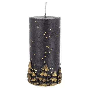 Parafinowa Ozdobna Świeca Dekoracyjna Czarna z Złote Choinki 14cm - FI7