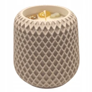 Świeca Sojowa w ręcznie wykonanym pojemniku z gipsu polimerowego – Zapach Bursztyn Stylowa świeca, wykonana z 100% wosku sojowego! Nie stosujemy innych miesz...