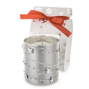 Materiał: parafina, szkło Kolor: srerbny Wymiary: 14x8x8 świeczka 8,5x7,5x7,5 Cechy produktu Niezastąpione do dekoracji stołów Dzięki swojej prostocie pasują do każdego wnętrza Świeca pali się czystym jasnym płomieniem Opis: Świateczna świeca wykonana z prawdziwą starannością przez polskiego producenta. Świeca nie leje się podczas palenia.