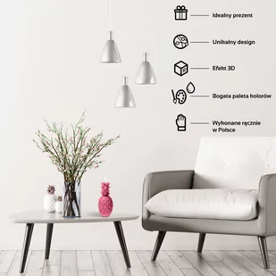 Świeca Ananas Duża to doskonały sposób na wprowadzenie nuty orzeźwienia do Twojego domu. Egzotyczne owoce to jeden z motywów nurtu urban jungle, czyli miejskiej dżungli, który jest jednym z najpopularniejszych trendów aranżacji mieszkania. Ananas będzie świetnym dodatkiem, który wprowadzi więcej naturalności i doda energii nowoczesnym wnętrzom. Wymiary produktu: 100x100x210mm Waga netto: