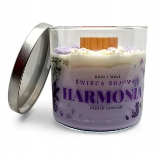 Świeca Sojowa naturalna ręcznie robiona duża 610ml ozdobna Harmonia Lawenda