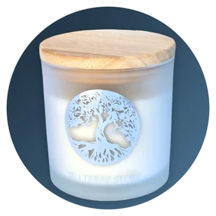 ŚWIECA SOJOWA PREMIUM DRZEWO SANDAŁOWE I BERGAMOTKA 360g SATYNOWA ŚWIECZKA ZE SREBRNYM LOGO / TU I TERAZ.STORE /