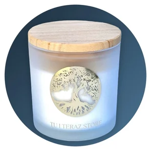 ŚWIECA SOJOWA PREMIUM DRZEWO SANDAŁOWE I BERGAMOTKA 360g SATYNOWA ŚWIECZKA ZE ZŁOTYM LOGO / TU I TERAZ.STORE /