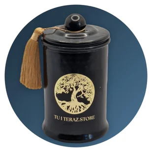 ŚWIECA SOJOWA Z KULKĄ I CHWOSTEM CZARNA 480g CZARNY OUD ZŁOTE LOGO
