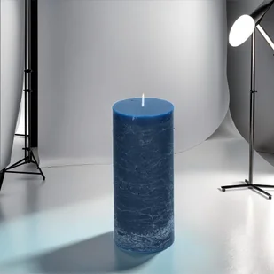 Świeca woskowa dekoracyjna 7x16 cm w stylu rustykalnym ciemno granatowa Articasa