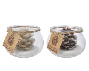 Świeca woskowa Świeczka woskowa w kształcie szyszki w śniegu w szklanej kuli. Dwa warianty kolorystyczne do wyboru. Prosimy o wybór wariantu podczas składani...