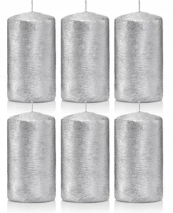 Świece ozdobne srebrne walec kokon 10/6 zestaw 6