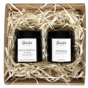 Zestaw świec sojowych w pudełku prezentowym 2x120ml BIAŁA HERBATA Z FIGĄ+PIWONIA W skład zestawu wchodzą dwie świece sojowe, każda o pojemności 120 ml: Świec...