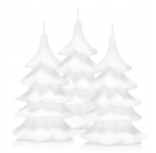 ZESTAW 3 ŚWIECZEK Świeczki świąteczne choinka ok 15 cm 3 szt. całe białe Dekoracyjne świece w kształcie choinki. Kolor biały + perłowy brokat kształt: choink...