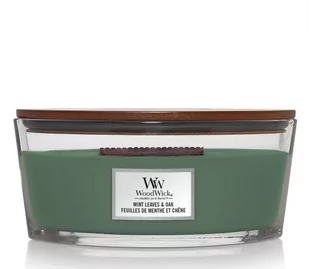 Charakterystyczny trzask i długi, tańczący płomień świec WoodWick® Ellipse jest tworzony przez opatentowany płomień Hearthwick®. Rozpieść swoje zmysły bogatym zapachem, trzaskającym knotem i stylowym szklanym pojemnikiem w kształcie łezki, który pozwala wnieść przytulny blask kominka do każdego pomieszczenia w domu. (Mint Leaves and Oak) Zapach świeżych liści mięty dodaje wibrującej świeżości drzewnemu akordowi zielonego mchu, zwęglonego dębu i cyprysu. (Liście mięty i dąb) Aromat świeżych liści mięty dodaje promiennej świeżości drzewnemu akordowi zielonego mchu, zwęglonego dębu i cyprysu. Świeca Woodwick Mint Leaves & Oak MINTENBLÄTTER & EICHE - łódź 453g
