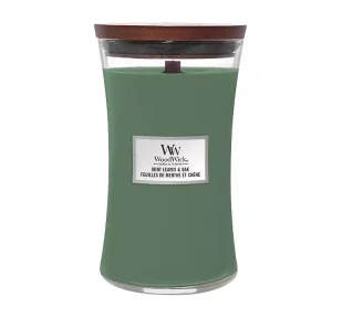 WoodWick Świeca Zapachowa MintLeaves & Oak 610g Zapach świeżo zerwanych liści mięty połączony z nutą zielonego mchu i wędzonego dębu. Nuty zapachoweNuty górne: Bergamotka, Cyprys, Ziele angielskieNuty środkowe: Mięta, Mech, Wędzony dąbNuty dolne: Bursztyn, Drewno agarowe