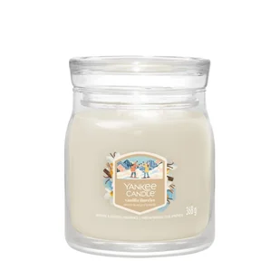 Yankee Candle Świeca w Średnim Słoiku Vanilla FlurriesYankee Candle Vanilla Flurries to otulająca, apetyczna kompozycja zapachowa, która łączy kremową wanilię z aksamitnymi akordami owoców i drzew. Otwiera się nutami brzoskwini, kokosa i wanilii, w sercu rozkwita cukier, irys i bursztyn, a głębi nadają nuty wetywerii, mchu dębowego i skóry. To zapach, który tworzy ciepłą, domową aurę pełną słodyczy i elegancji. Nowa linia Signature to odświeżony design słoika, dwa bawełniane knoty i mieszanka wosku sojowego, które gwarantują równomierne spalanie oraz intensywny aromat. Ręcznie ilustrowane etykiety i żywe kolory wosku podkreślają charakter świecy i stanowią elegancką dekorację każdego wnętrza.