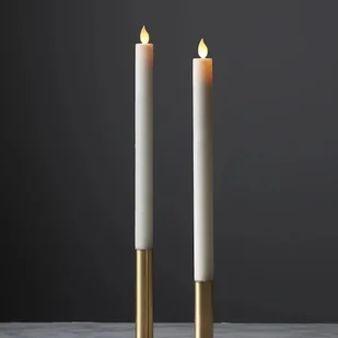 Zestaw składa się z dwóch świec z korpusem z prawdziwego wosku. Świece mają średnicę 2,4 cm i wysokość 30 cm. ZESTAW ŚWIEC LED WOSKOWYCHZestaw dwóch świec obiadowych LED wykonanych z białego wosku, z płynnie kołyszącym się i mrugającym ciepłym płomykiem, to elegancka dekoracja, idealna do stworzenia wyjątkowej atmosfery w pomieszczeniach. Każda świeca jest zasilana 2 bateriami AA, które nie są dołączone. Świece posiadają wbudowany timer, dzięki czemu po włączeniu świecą 6 godzin dziennie przez około 60 dni.