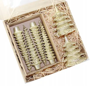 Zestaw prezentowych świeczek choinek 10 cm kolor złoty + stroikowych kolor złoty Choinka 10 cm złota x2 kształt: choinka kolor: złoty wysokość: 10 cm średnic...