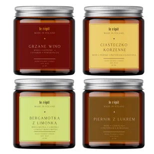 ZESTAW PREZENTOWY - Świece sojowe zapachowe 4x60 ml. HAND MADE Bergamotka z limonką, Grzane wino, Ciasteczko korzenne, Piernik z lukrem