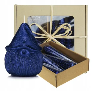 Zestaw świąteczny świeca skrzat oraz 4 szt świeczki choinki do stroika kolor granatowy Świeca skrzat kolor granatowy kształt: skrzat kolor: granatowy lakier ...