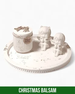 Zestaw Świąteczny Świetlisty Spokój - 4 elementy - 2 Aniołki - Podstawka - Świeca Sojowa o Zapachu Christmas Balsam