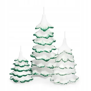 Zestaw 3 świec dekoracyjnych CHOINKA w białym kolorze z zielonymi końcówkami. Ciekawa ozdoba domu na świąteczny czas. kształt: CHOINKA kolor: ZIELONY wysokoś...