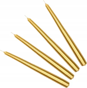 ZESTAW ŚWIECA 4 SZT. STOŻEK ZŁOTY METALIK STOŁOWA ŚWIECZKA KLASYCZNA ŚWIECE Świeca pali się stałym i jasnym płomieniem. W dowolnym momencie możesz sprawić, ż...