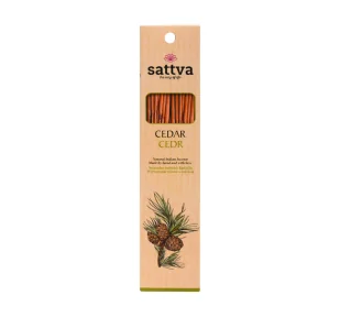 KADZIDEŁKA SWEET CEDR SATTVA NATURALNE KADZIDEŁKA 30g NOWOŚĆ z Kadzidełka Naturalne Sattva Cedr - Cedar. Kadzidełka ręcznie rolowane. Bardzo poszukiwane indyjskie kadzidełka używane podczas medytacji i Yogi i dla wszystkich, którzy cenią naturale składniki w kadzidełkach. Starodawna receptura z pyłków drzew, ziół, wyselekcjonowanych pyłków kwiatowych, co zapewnia uzyskanie najlepszych kadzidełek, które odprężają i dodają energii. Jest to kadzidełko pyłkowe masala z bogatymi naturalnymi pyłkami drzew, kwiatów i ziół - starannie dobrane i mieszane z naturalnym olejkiem eterycznym.