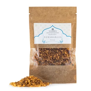 Yasmeen Pomarańcza - kadzidło greckie 60 g Piękne kadzidło o zapachu pomarańczy. Produkowane w słonecznej Grecji. Przyniesie ciepło i orzeźwienie swoim cytrusowym zapachem w każdym pomieszczeniu w którym jest palone. Krótka instrukcja palenia żywic: Do rozpalenia żywicy koniecznie jest posiadanie specjalnych węgielków.