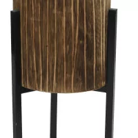 DONICZKA drewniana na metalowym stojaku Kwietnik składa się z metalowego stojaka z drewnianą osłonką. Osłonka drewniana, wykonana z pnia drewna paulownia. Wykonana z jednego kawałka drewna. Na zewnątrz żłobiona, efekt 3D. Drewno przyciemniane, ciemny brąz.