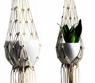 JUSTYNA. Duży kwietnik wyplatany ręcznie ze sznurka bawełnianego (techniką makramy). długość całkowita (od góry do końca frędzli, z doniczką w środku): 133 cm (doniczka ze zdjęcia ma wysokość 15 cm i średnicę 19 cm) ...