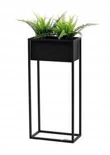 Nowoczesny kwietnik z donicą w całości wykonany z metalu. Stanowi idealne uzupełnienie wnętrz w stylu loft lub industrialnym. Świetnie sprawdzi się jako dekoracja każdego wnętrza, ozdobi salon, korytarz, sypialnię, a także biuro czy restaurację. Pięknie wyeksponuje zarówno naturalne, jak i sztuczne kwiaty. Prosta, minimalistyczna konstrukcja sprawia, że kwietnik stanowi ciekawe połączenie funkcjonalności oraz nowoczesnego designu.