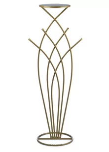 Nowoczesny kwietnik stojący w stylu loftowym. Dzięki swojej prostocie i unikalnemu designowi stojak będzie idealny jako uzupełnienie do każdego stylu mieszkania, pokoju czy domu. Dzięki solidnemu i wytrzymałemu wykonaniu sprawdzi się również na: balkon, ogród, altanę czy werandę. Stojak wykonany jest z drutu stalowego, malowanego proszkowo, a zatem jest odporny na czynniki zewnętrze oraz zniekształcenia. Kwietnik jest trwały, lekki i stabilny dzięki czemu ma uniwersalne zastosowanie w domu czy ogrodzie. Prezentowany kwietnik jest w kolorze złotym.