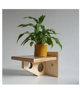 Minimalistyczny kwietnik ścienny, w całości wykonany ze sklejki. Otwory w podstawie dodają kwietnikowi lekkości. Wymiary podstawy (części poziomej, na której stoi doniczka ): 18cmx20cm Wymiary części przylegaj ...