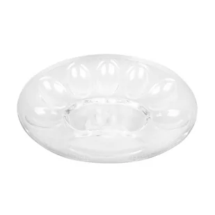 Szklany talerz na jajka do podawania wykwintnie przyrządzonych i udekorowanych jaj Wymiary talerza do jajek: długość - 26 cm szerokość - 19 cm
