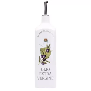 Opis Linii Naczynia kuchenne z kolekcji Conserva to wysokiej jakości porcelana Premium, która zachwyca niewymuszoną elegancją i stylizacją vintage, dodającą Twoim wnętrzom iście rustykalnego klimatu. Piękne zdobienia bez trudu pomagają odgadnąć zastosowanie poszczególnych pojemników. Ponadczasowa porcelana przeniesie Cię w świat małego, toskańskiego miasteczka, skąpanego w słońcu i urzekającego czarem małych, swojskich uliczek i domostw. Szczegółowy opis produktu Kwadratowa butelka na olej z wygrawerowanym napisem i oliwkami jest idealna do przechowywania i serwowania oleju oraz oliwy podczas codziennych posiłków.