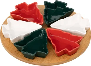 Kada miseczka posiada unikalny ksztat choinki, co dodaje uroku kademu stoowi. Bambusowa taca: Zestaw zawiera eleganck tac wykonan z bambusa, ktra jest nie tylko estetyczna, ale take trwaa i ekologiczna. Taca uatwia transport i podawanie miseczek. Wysokiej jakoci szko: