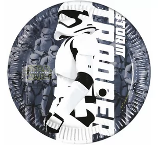 talerzyki papierowe z motywem z filmu "Star Wars The Force Awaknes" średnica: 20 cm ilość: 8 szt.