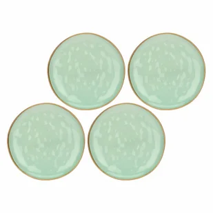 Zestaw talerzy Rose&Tulipani Concerto Verde Acqua to 4 sztuki o średnicy 27 cm, wykonane z trwałej kamionki w miętowym kolorze. Nadają się do piekarnika i zmywarki, co gwarantuje wygodę użytkowania. Produkt włoski z 2-letnią gwarancją.