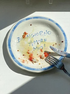 Talerz ceramiczny z napisem Buongiorno Amore Mio Kolekcja CIAO średnica 22cm *czas realizacji zamówienia to miesiąc *produkty Muss są na zamówienie więc nie ma możliwości zwrotu ...