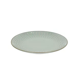 Talerz deserowy wykonany ręcznie z efektem szkliwa. Posiada unikalny kształt, który może nieznacznie różnić się między sobą. Wymiary: śr. 21 cm, wys. 2,5cm. Produkt można myć w zmywarce i używać w kuchence mikrofalowej.
