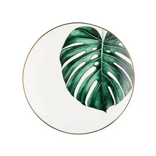 Talerz deserowy Lauren 20 cm złota obwódka liść biały