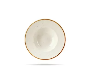 Talerz głęboki rant 24 cm Barley White CHURCHILL Talerz głęboki z rantem o średnicy 24 cm, z serii Stonecast, firmy Churchill. Talerz doskonale sprawdzi się do serwowania pasty i innych dań z makaronem. Wysoka, pojemna, praktyczna. Z efektownym zdobieniem. Kolor Barley White to jasny odcień kremowej porcelany, ozdobionej ręcznie nakrapianym wzorem, z brązowym (jaśniejszym lub ciemniejszym) rantem.