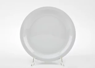 Talerz płytki 25cm Ameryka Kolekcja Ameryka pochodzi z fabryki Lubiana. Inspirowana jest zachodnimi trendami. Wyróżnia sięsolidnym fasonem, który sprawia, że potrawy na niej podawanezachowują ciepło przez dłuższy czas. Ameryka cieszy sięszczególną popularnością wśród odbiorców z USA, Niemiec iWłoch, a teraz także Polski. Porcelana jest w kolorze bieli.