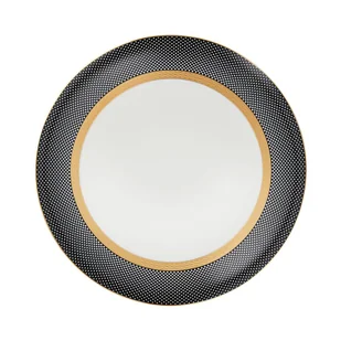 materiał: porcelana kostna kolor: biały, czarny, złoty złoty wzór średnica: 27 cm