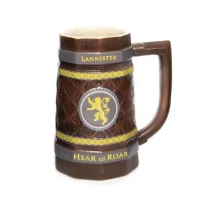 Gra o Tron Lannister - kufel Jeśli pojemność zwykłych kubków Ci nie wystarcza, wybierz kufel który może pomieścić w sobie nawet dwa razy więcej napoju. Podwójna dawka kawy, gorącej herbaty czy schłodzonego napoju pomoże Ci przetrwać mroźny wieczór lub odpoczą po ciężkim dniu. Kufel to świetny pomysł na prezent dla przyjaciela! Wykonany z najwyższej jakości ceramiki. Mocny i trwały nadruk na kubku. To oficjalny i licencjonowany kubek.