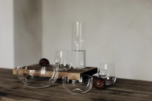 SENSUALNA LINIA NACZYŃ STOŁOWYCH O MINIMALISTYCZNYM I ZMYSŁOWYM CHARAKTERZE. W SECIE ZNAJDZIESZ KARAFKĘ, DWIE NISKIE SZKLANKI I DWIE MISKI: MAŁĄ I DUŻĄ. KLUCZOWY JEST TUTAJ DOTYK: NA POWIERZCHNI NACZYŃ ...